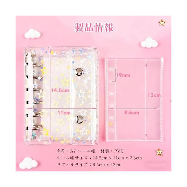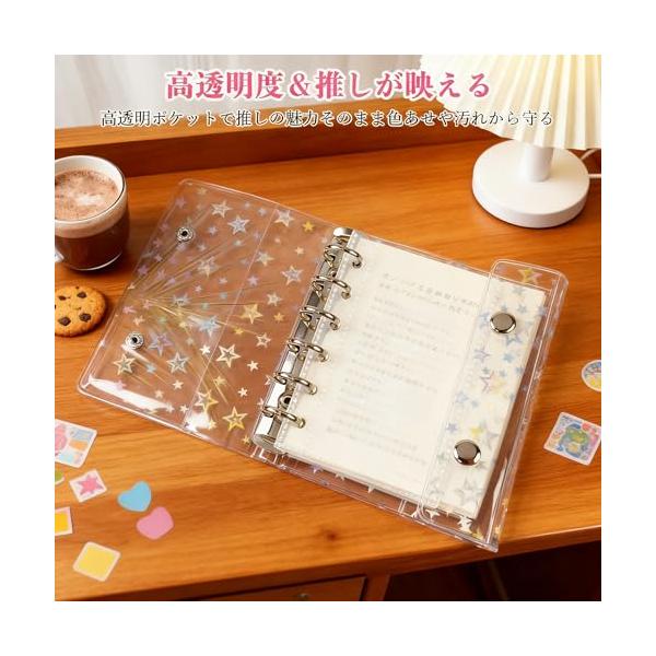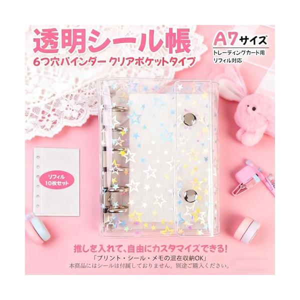 A7 シール帳 星柄 手帳 バインダー クリア 透明 ポケットリフィル10枚付き カード収納 プリクラ整理 写真整理 立体シール対応 貼り直し可