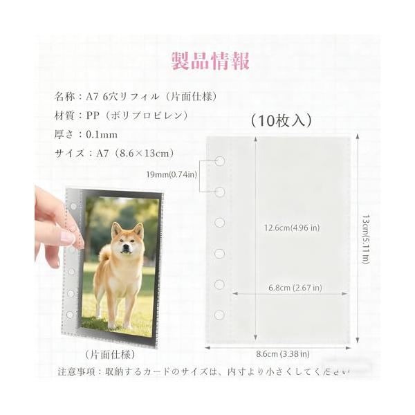 ・【10枚ポケットリフィルで整理簡単】A7サイズ対応のポケットリフィル10枚付き。片面・両面使用可能で、カードやシール、写真、小物をすっきり整理。市販リフィルの追加も可能です。