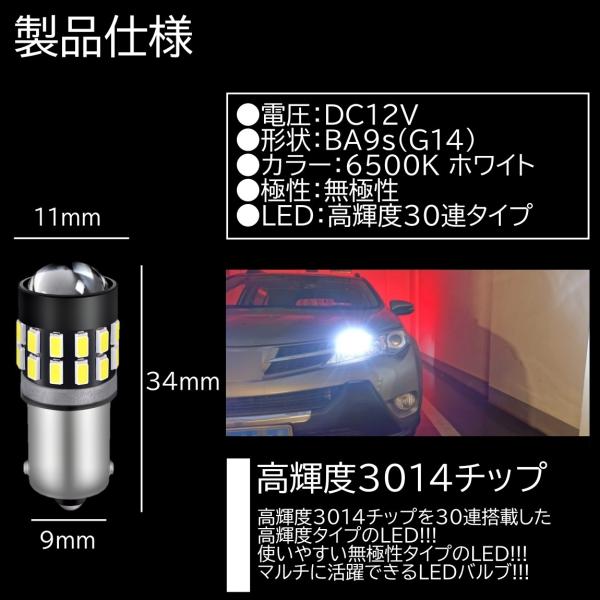 G14 BA9s T8.5 30SMD 3014SMD 12V LEDバルブ ホワイト ポジション ナンバー灯 マーカー ルームランプ 2個セット 無極性