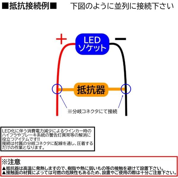 ※必要な抵抗値の計算や個数はテスター等で実測の上、各自取付箇所に応じ、お間違いないようにお願いします。