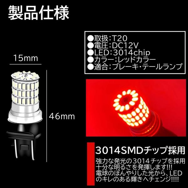 66連 全体発光 爆光LED T20 ダブル 無極性 ブレーキランプ ストップランプ テールランプ 赤 レッド 4個