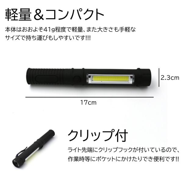 明るい LEDライト 電池式 ハンドライト LED 強力 ハンディライト LED作業灯 ワークライト 懐中電灯 COB マグネット 照明 磁石 クリップ コンパクト 小型
