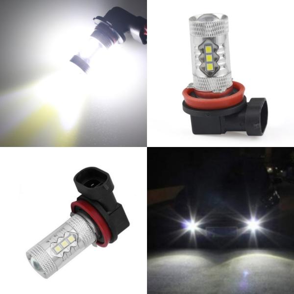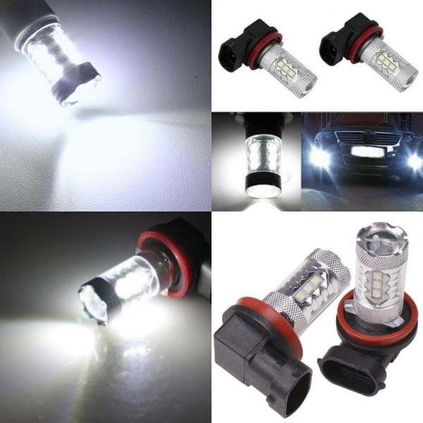 高輝度 LEDフォグ 16SMD プロジェクター LEDバルブ 2個SET 12V H8/H9/H11/H16 80Wクラス 6000K 3030SMDchip LEDフォグ ホワイト 白