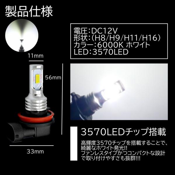 高輝度LED 3570chip ハイパワーLED LEDフォグランプ 2個セット H8 H9 H11 H16 6000K SMD 12V 白