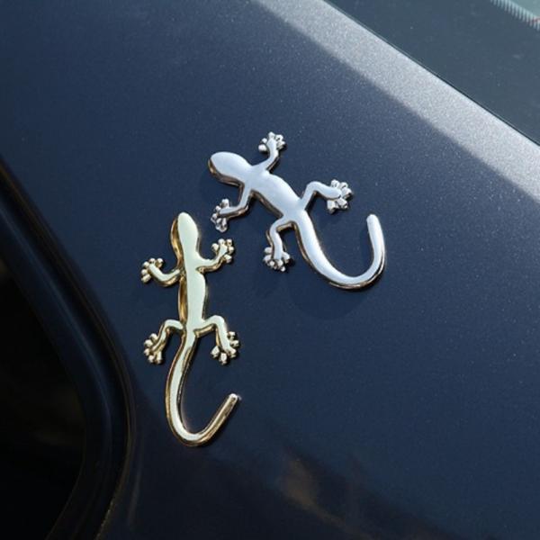 1枚 全2色 ヤモリ トカゲ エンブレム ステッカードレスアップ 車 金 銀 ゴールド シルバー カスタム カー用品