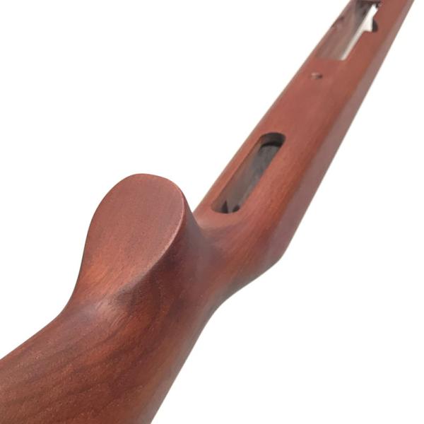 また、こちらの木製ストックは純正よりもバレル側の部分が80mm程長いのでバレルとストックの隙間はより大きく見えますので、ご了承の上ご検討下さい。