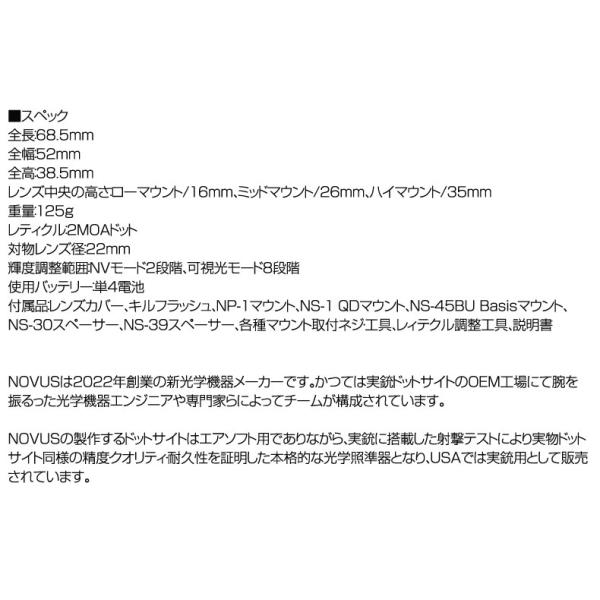 NOVUS MDS-3 VOZR-1タイプマイクロドットサイト 実物性能モデル MDS-03-RD-BLK