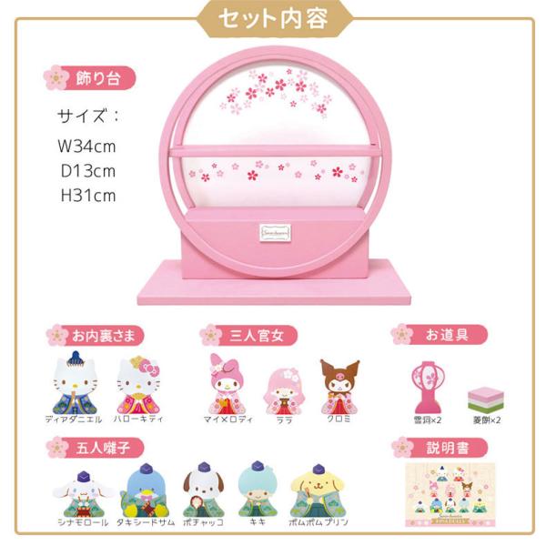 ハローキティ 積み木のお雛様 木製 10人飾り ひな人形 コンパクト 送料無料