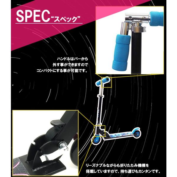 持ち運びに便利なキッズのアウトドアシーンに最適なキックスクーターです。