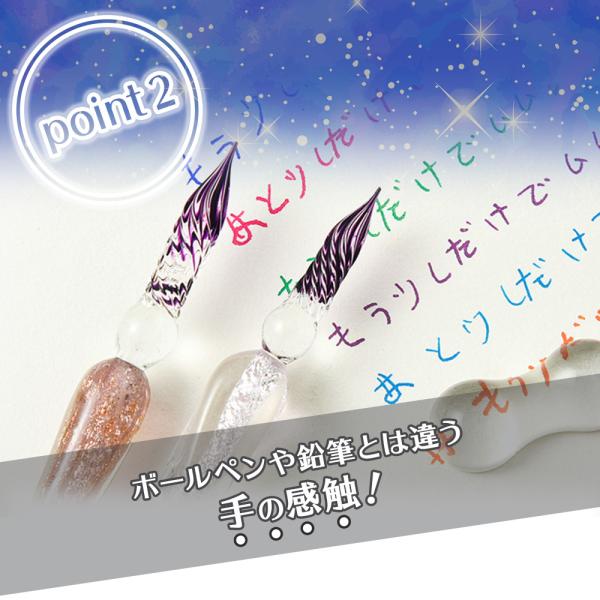 ペン先のガラスの側面に溝があり、インクに浸すと毛細管現象によって