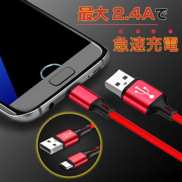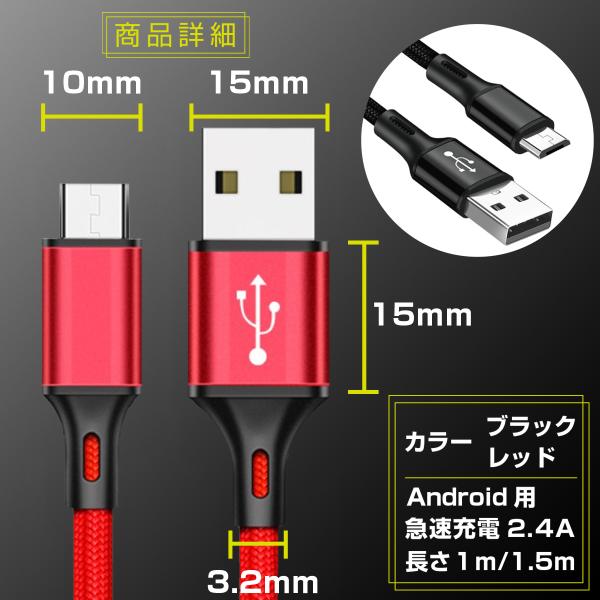 micro USBケーブル Android用 1m 1.5m 2.4A 充電器 急速充電ケーブル マイクロUSB Xperia Galaxy AQUOS 多機種対応