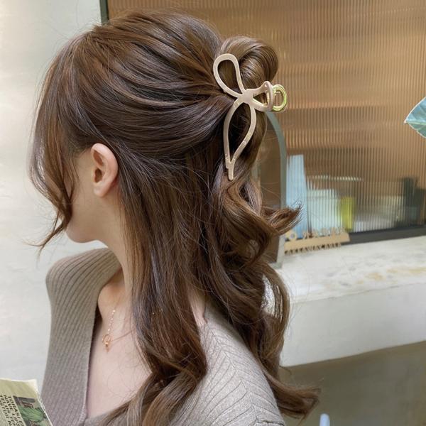 ヘアクリップ 2点セット バンスクリップ ヘアアクセサリー リボン シンプル かわいい ガーリー マットカラー 時短 まとめ髪 韓国 韓国っぽ