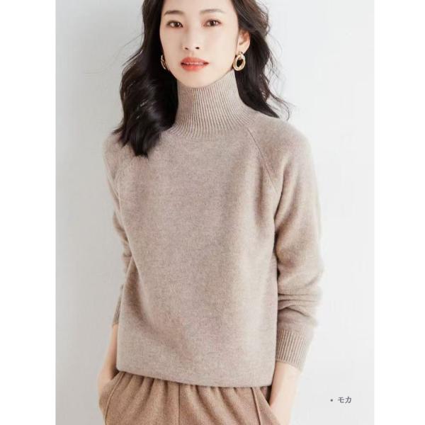 【予約販売】ハイネック ニット レディース 秋 冬 ゆったり セーター リブニット トップス 長袖 無地 シンプル 上品 体型カバー