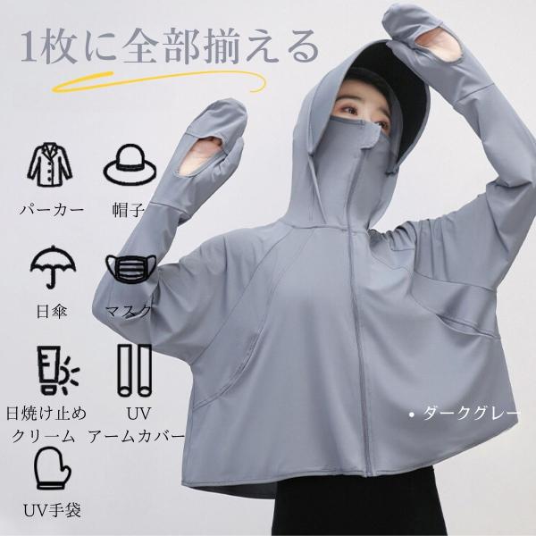 UVカット パーカー レディース 長袖 ゆったり 夏 冷感 手袋 メッシュ 素材 通気口 指穴 つば 取り外し 日焼け防止 服 薄手 吸湿 速乾 紫外線対策