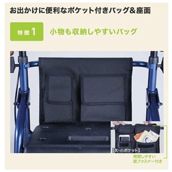 ●サイズ/幅46×奥行52×高さ74〜86.5(6段階/2.5cm)cm、折りたたみ時:奥行39×高さ82cm、座面:幅36×奥行24cm、座面高:45cm、ハンドル内幅:35cm