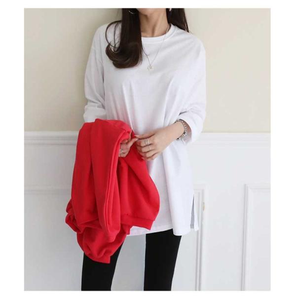 シンプルラウンドネックゆったりルーズシルエット♪スリット入りロング丈長袖Tシャツカットソー/薄手 無地【メール便送料無料】