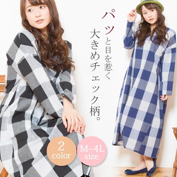 チェック柄 ゆるワンピース チュニック 大きいサイズ 体型をカバー【メール便送料無料】
