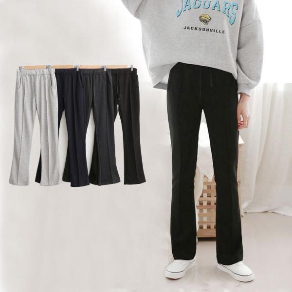 裏起毛 スウェットパンツ ブーツカット・ピンタック・パンツ ポケット付き 無地 ウエストゴム&紐付き 2type[裏起毛・起毛無]