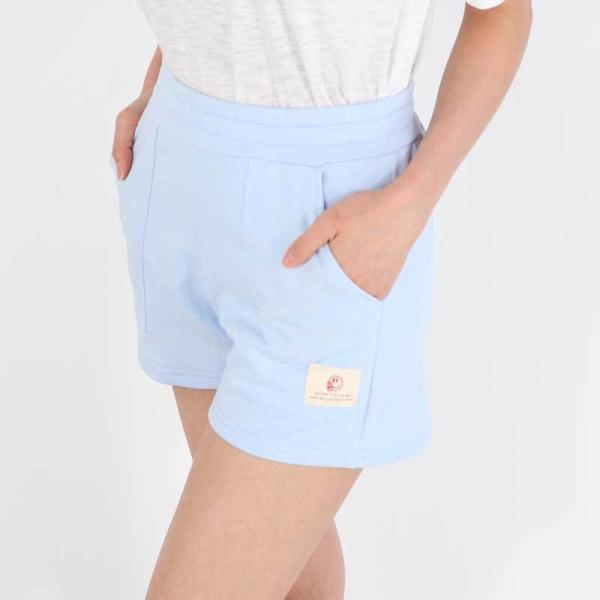 ショートパンツ ピーススマイル&英字 ラベル付き 短パン ショーパン ポケット付き ウエストゴム 無地 レディース【メール便送料無料】