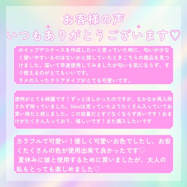 入手困難なラメ入りクリアタイプのホイップデコが欲しい方は是非ご購入を検討下さいませ◎