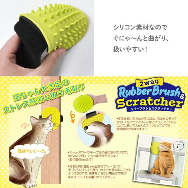 猫ブラシ 2Way ラバーブラシ&スクラッチャー 取り付けタイプ プラッツ ペット 猫 ブラシ お手入れ