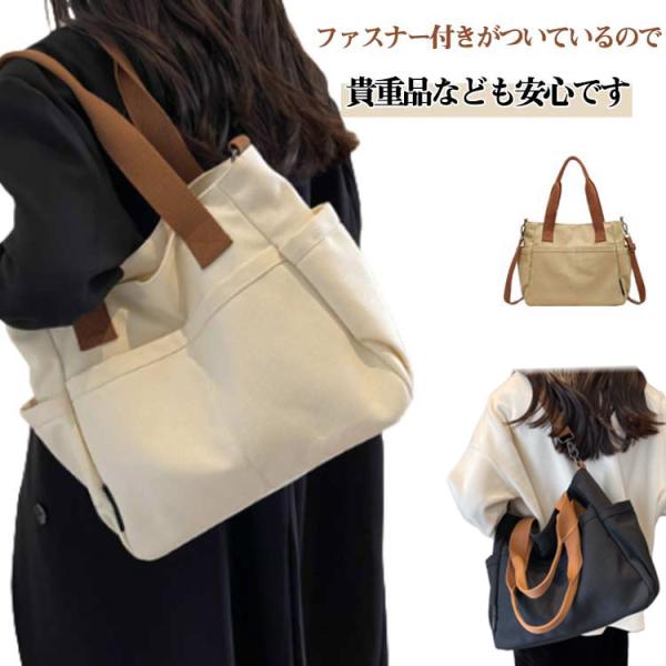 ショルダーバッグ 帆布 ファスナー付き 2WAY トートバッグ レディース メンズ 大容量 斜めがけ A4 大きめ 布 軽い 無地 カジュアル 横型