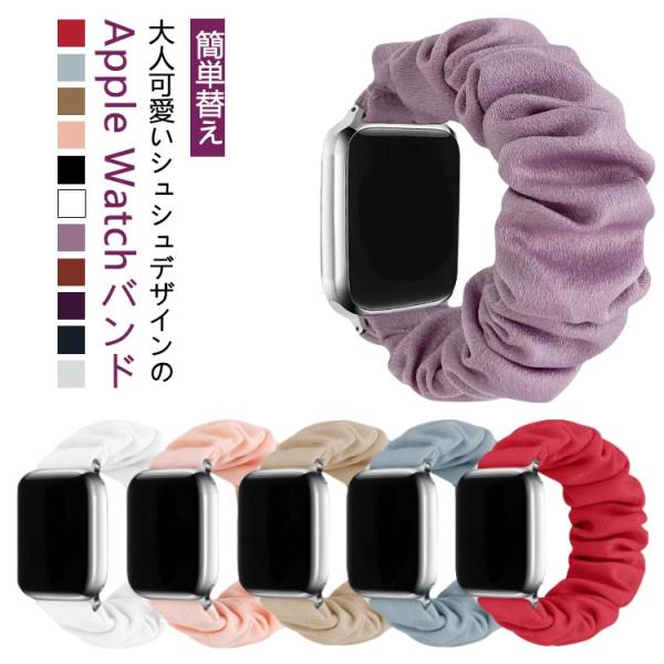 Apple Watch バンド シュシュ アップルウォッチ 時計 腕時計 レディース スマートウォッチ ベルト フリル サテン風 睡眠 用 Andro