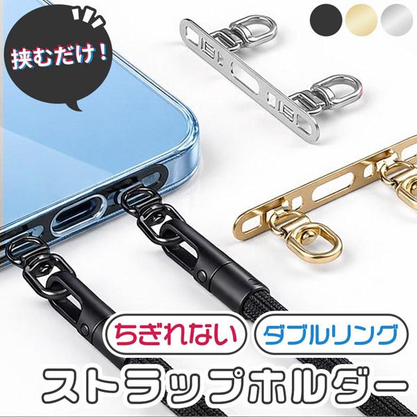 ストラップホルダー ステンレス製 スマホ 2点吊り ダブルリング 金具 ストラップホール 携帯ストラップ iPhone 挟む ホルダー 落下防止 リン