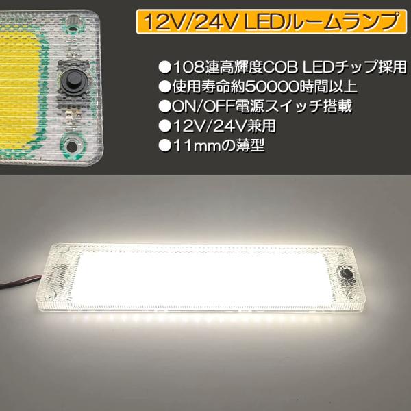 【商品仕様】電球色:ホワイト/電圧:DC12V~DC24V/使用寿命:約50000時間以上/LEDチップ:面発光COB素子 108連/サイズ:長さ246mm*幅60mm*厚さ10mm(LEDの中の厚さ:8mm)