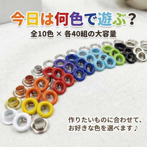 両面ハトメ 5mm 400組セット ハトメパンチ 鳩目 穴あけ 打ち具 工具セット ハトメ 10色 カラフル 大容量 レザークラフト 手芸 DIY ハ