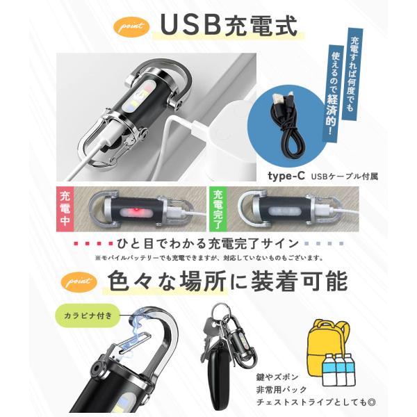 キーホルダーライト カラビナ付き COB LED ライト ミニライト 携帯ライト 小型 カラビナ キーホルダー 携帯 防災グッズ アウトドア 多機能
