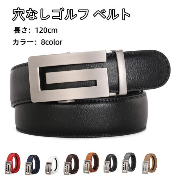 ゴルフ ベルト メンズ 白 穴なし ビジネス カジュアル オートロック 紳士 赤 穴無し 牛革 ウエスト おしゃれ