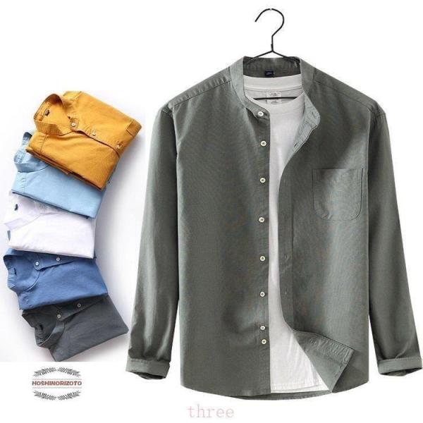 メンズ シャツ カジュアルシャツ 白シャツ長袖 ビジネスシャツ バンドカラーシャツ ス 無地 スタンドカラー 秋物