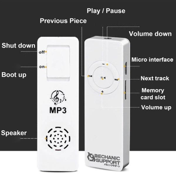 【ブラック】新品 長方形 スピーカー内蔵 MP3 音楽 プレイヤー SDカード式 メカニックサポート