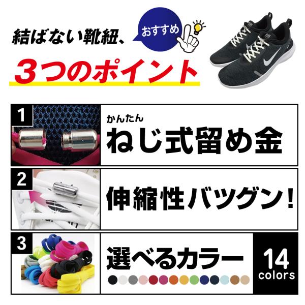 靴ひも くつ紐 平紐 ゴム 平ゴム スニーカー 靴 シューズ 取付簡単 メンズ