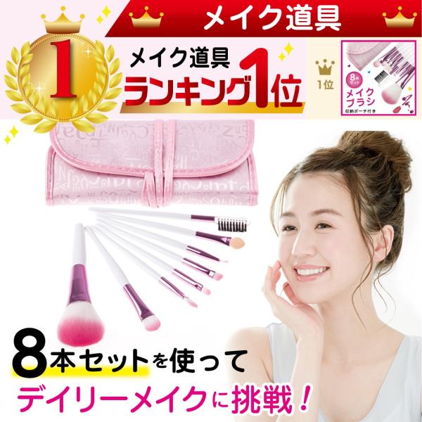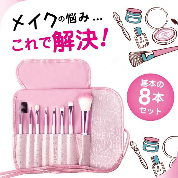 メイクブラシ 8本セット 化粧ブラシ ポーチ付き 旅行にも◎