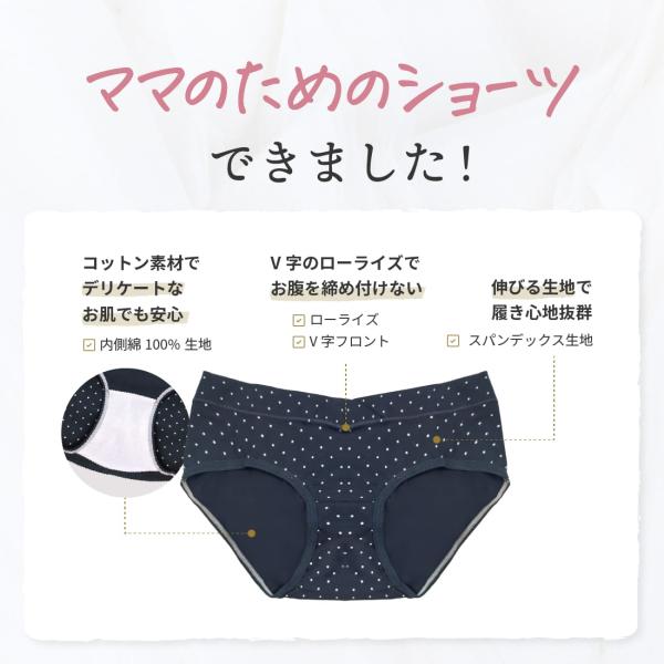 マタニティ ローライズ ショーツ パンツ 産前 産後 妊婦 下着 レディース 水玉 無地 ドット 可愛い
