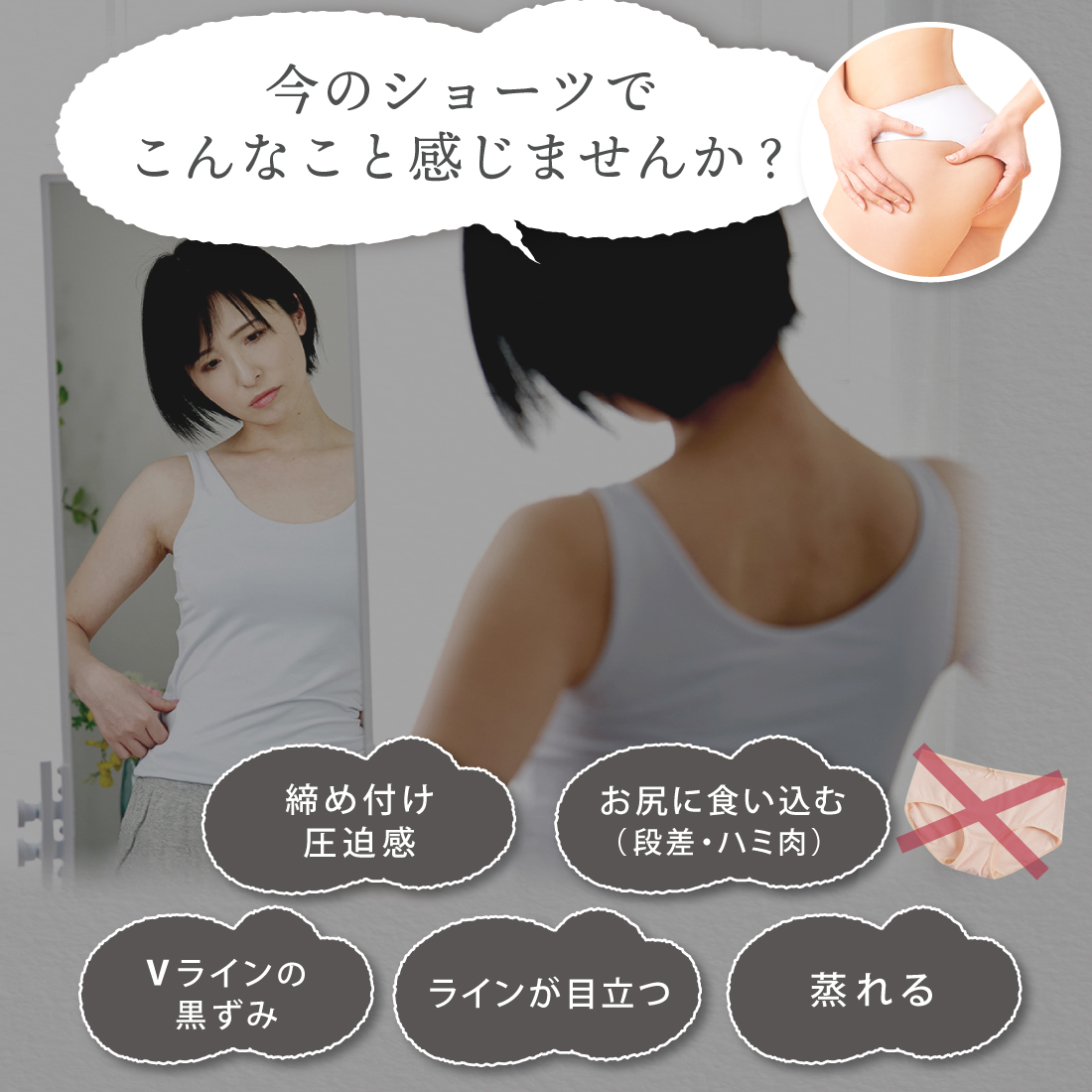 ヒップ全体を包む為、段差・ハミ肉 食い込みがなくストレスフリー!