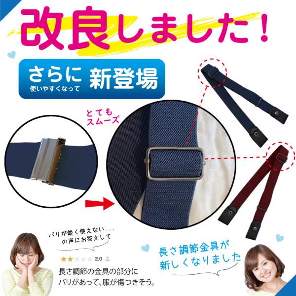 ベルトループ(ベルト通し)にゴムベルトの両端をパチンと留めるだけ。