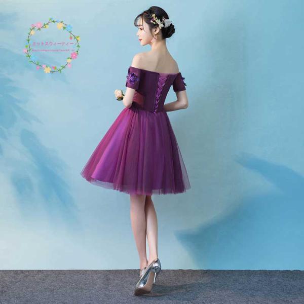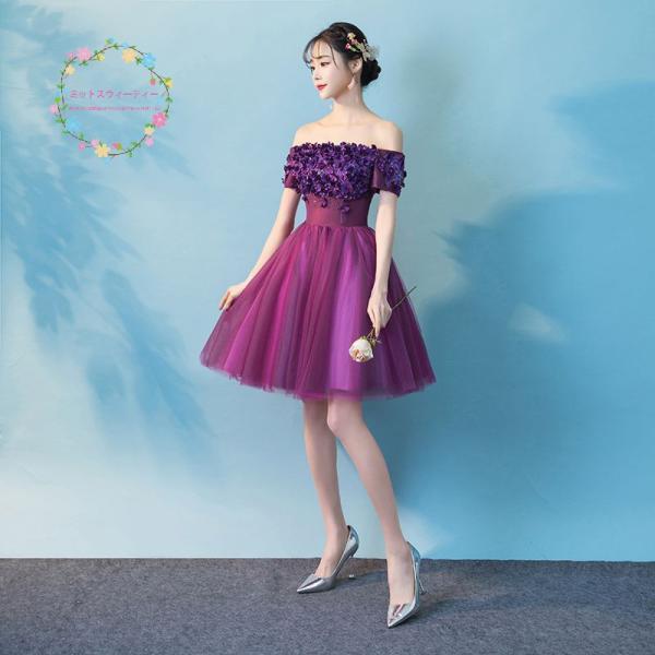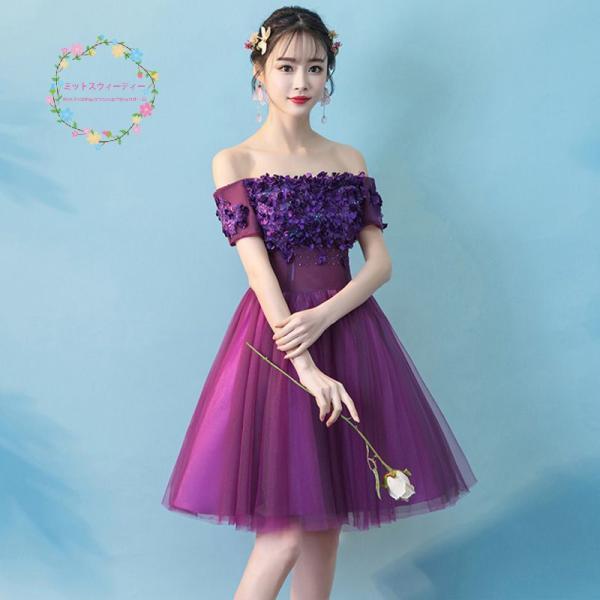 ミニドレス ウェディングドレス 二次会 パーティー カラードレス 演奏会 披露宴 お呼ばれ 20代 30代 40代 膝丈 紫 大人 上品 お呼ばれ 披露宴 卒業式 成人式