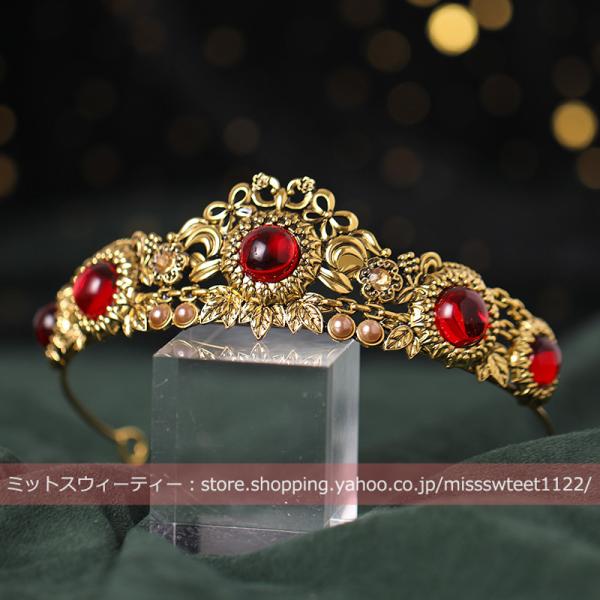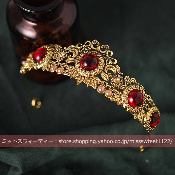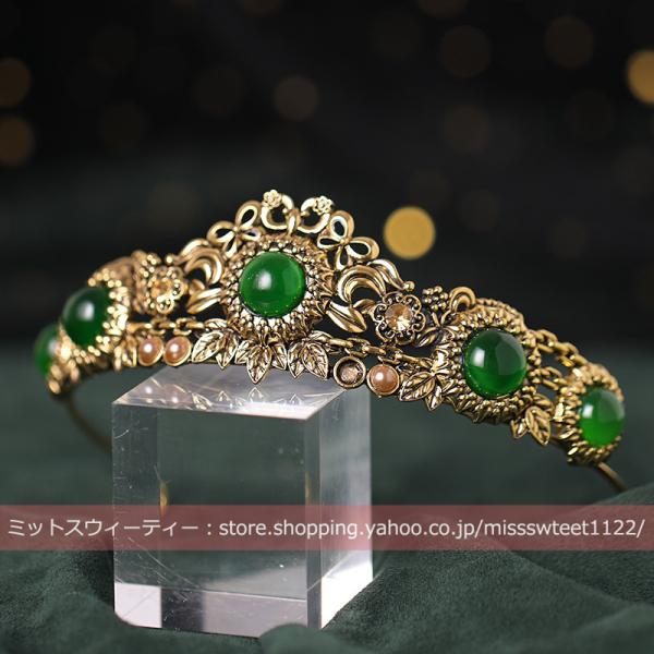 ウエディング グリーン レッド ホワイト ヘッドドレス ティアラ 髪飾り クラシック 発表会 演奏会 イベント パーティー 二次会 ヘアアクセサリー ビンテージ風