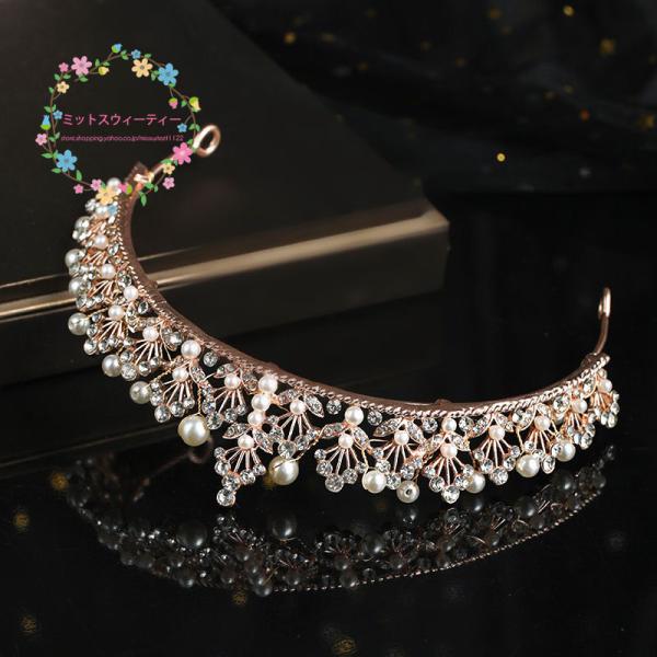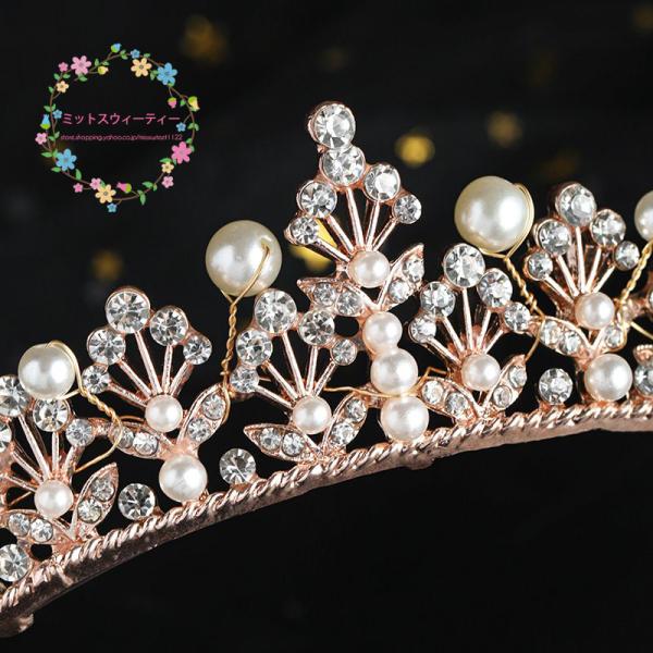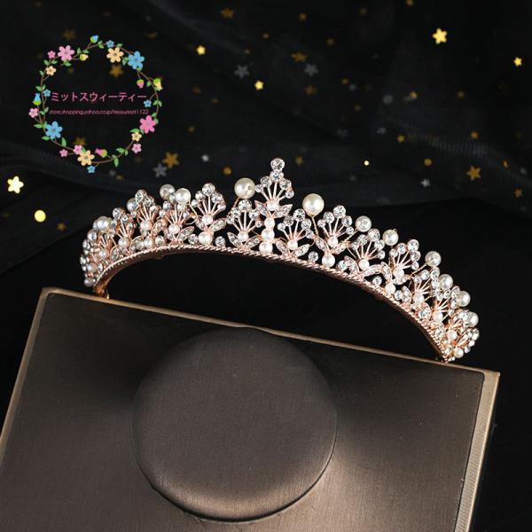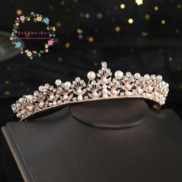 ティアラ クラウン 王冠 ウェディングヘッドドレス パール ピンクゴールド パールティアラ 結婚式 教会挙式 ウェディングティアラ ブライダルジュエリー