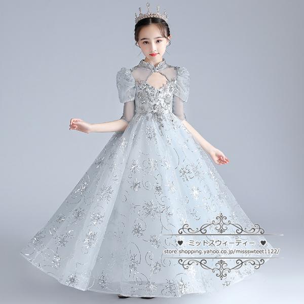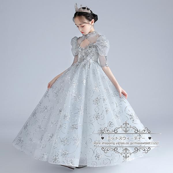 カラードレス キッズ ドレス 子供ドレス グレー シルバー プリンセス 女子 ピアノ 発表会 フォーマル 子ども ガールズ イベント 舞台 演出 ステージ衣装 上品