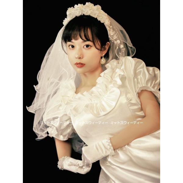ウエディングドレス レトロ 花嫁 フリル サテン 昭和風 前撮り フォトウェディング 結婚式 リゾート お誕生日 スタジオ ロケーション撮影 シンプル 成人式 清純