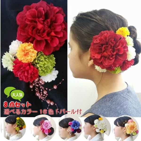 人気組み合わせ 髪飾りダリアセット 8Pセット パール付 袴・七五三・成人式