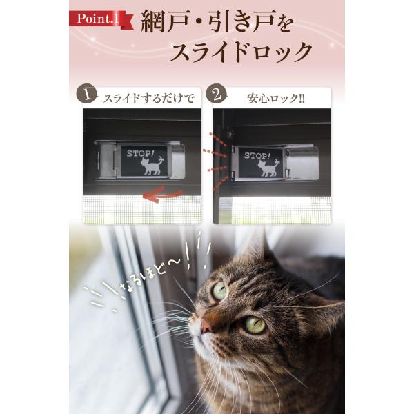 網戸ロック 3個セット にゃんにゃんストッパー 猫 脱走 防止 補助錠 ブラック