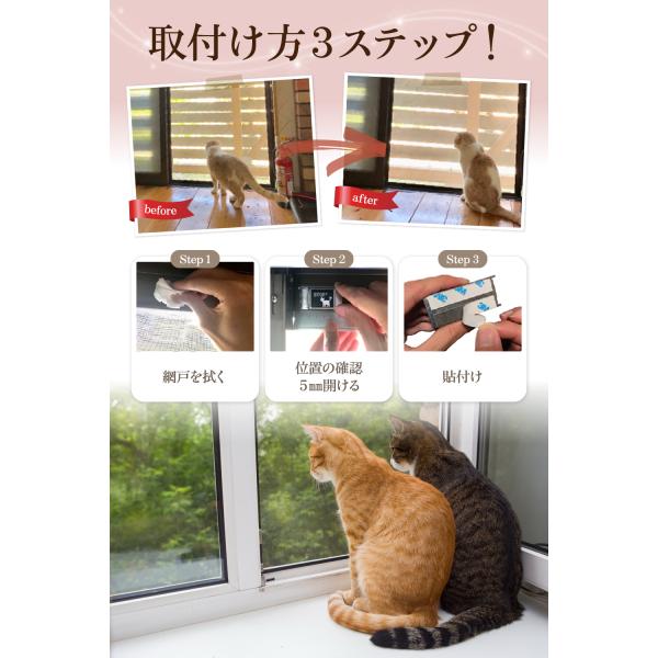 【詳細説明】 この商品はステンレス製かつ3M強力両面テープを使用してます。なので、錆びにくくしっかりと網戸にくっつきます。つまり、しっかりと網戸を固定されるため、お子様の予期せぬ行動を事前に防ぎ、また、ネコや犬の脱走防止としてもお使い頂けます。