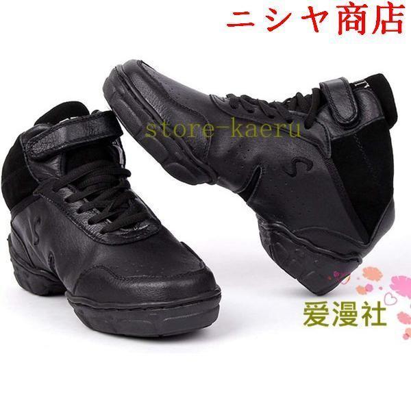 ダンススニーカー 男女兼用 ジャズシューズ ハイカット 革 ベルクロ 厚底 スプリットソール レディース 大きいサイズ ランニング 練習用