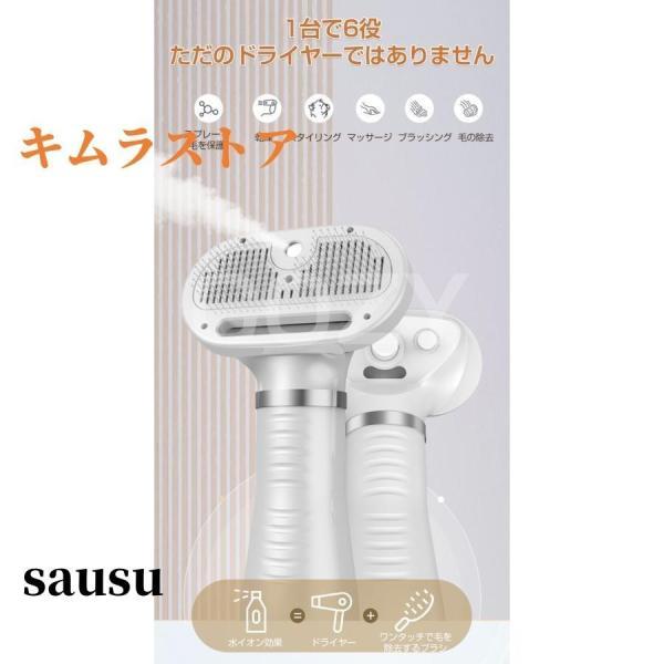 ペットドライヤー 1台6役(乾燥/ブラシ/抜け毛軽減/ミストスプレー) 犬 猫 うさぎ用 3段階温度調節 静音設計