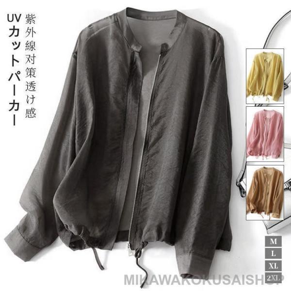 カーディガン レディース シアージャケット トップス 長袖 ブルゾン ノーカラー シアーカーデ 春 夏 UV対策 羽織り 冷房対策 涼しい 無地 ライトアウター